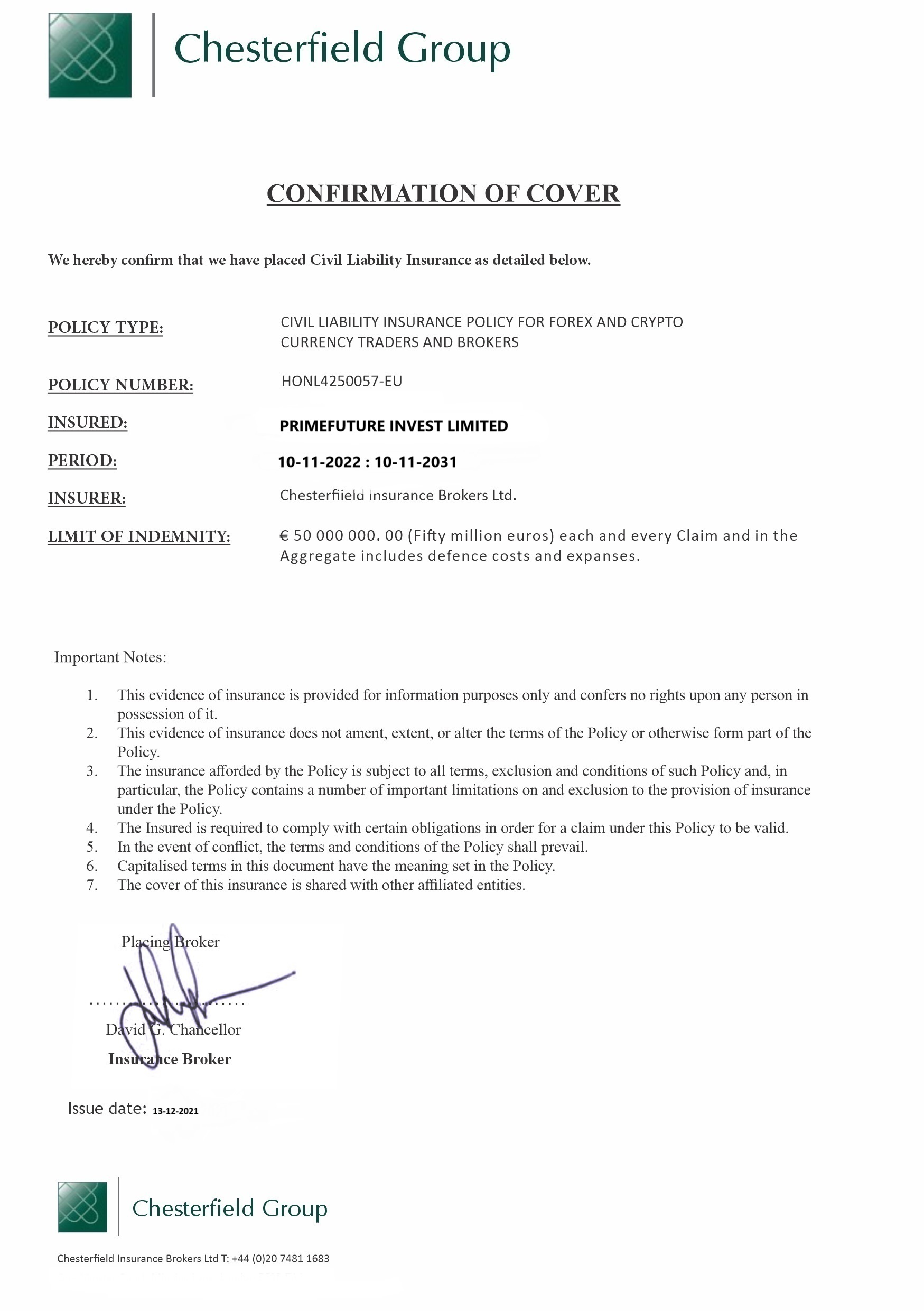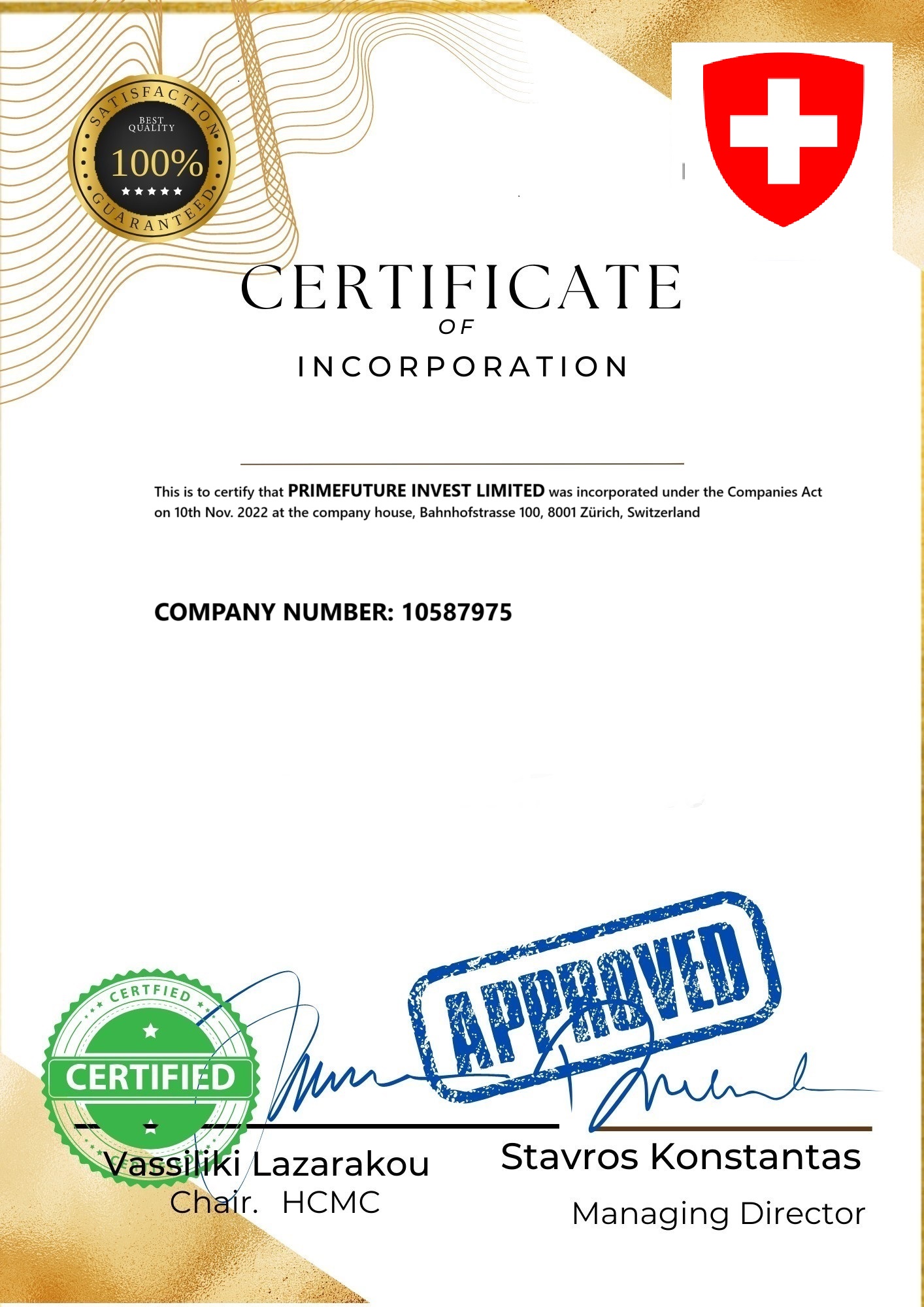 Our company is legally registered in the Switzerland as "Primefuture Invest Limited" With company Number "13216215" . .